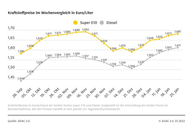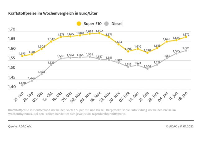 Dieselpreis springt erstmals über Marke von 1,60 Euro – Auch Benzin spürbar teurer – Anstieg des Rohölpreises lässt Kraftstoffpreise weiter klettern