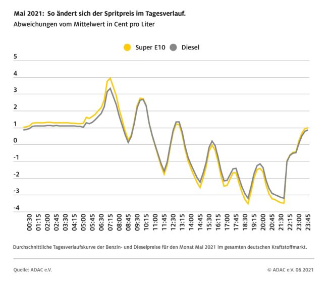 ADAC Auswertung: sieben Preisrunden am Tag – Spanne von sieben Cent zwischen teuerstem und günstigsten Tankzeitpunkt