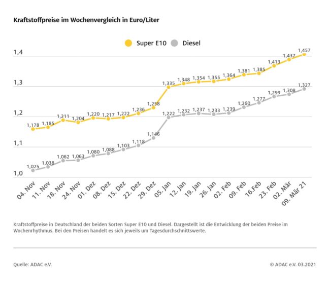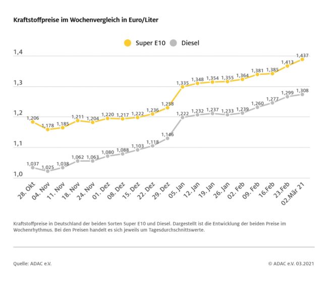 Nach einem steilen Anstieg in der letzten Woche notieren die börsengehandelten Rohölpreise seit einigen Tagen nun wieder etwas tiefer. Noch am Montag hatte die europäische Referenzsorte Brent so viel gekostet wie seit Januar 2020 nicht mehr. Inzwischen hat sich die Richtung der Börsen zwar gedreht, doch das Preisniveau ist und bleibt hoch. In den Preisen…