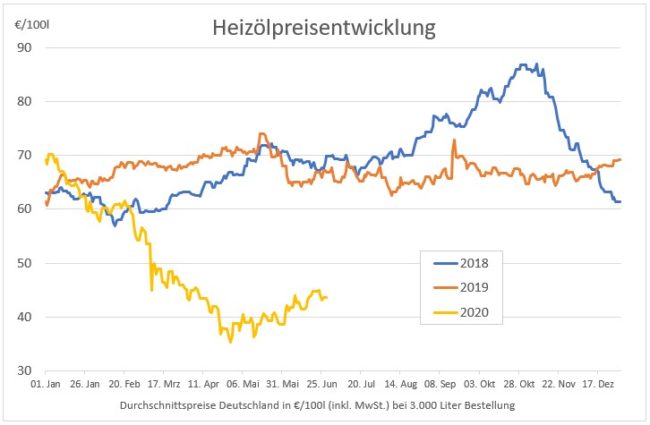 Auch wenn die Corona-Pandemie noch nicht beendet ist, zeigt sich am langfristigen und kurzfristigen Preisvergleich doch, dass der Preissturz vom Frühjahr vorbei ist. Seit Mai klettern die Preise langsam aber stetig wieder etwas in die Höhe. Verglichen mit den Vorjahren bleibt Heizöl aber nach wie vor unschlagbar günstig. Heizöl wird nur langsam wieder teurer…