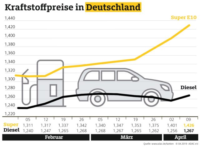 München (ots) Die Preise an den Tankstellen bewegen sich in der Karwoche weiter nach oben, Benzin kostet derzeit so viel wie zuletzt Anfang Dezember. Laut aktueller Auswertung des ADAC müssen Autofahrer für einen Liter Super E10 im Bundesmittel 1,451 Euro bezahlen, 2,5 Cent mehr als in der Vorwoche. Diesel verteuerte sich um 1,0 Cent auf…