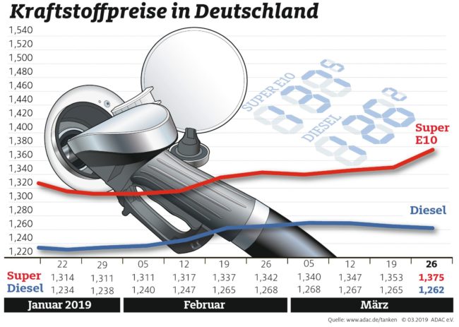 Spritpreise im März auf Jahreshoch