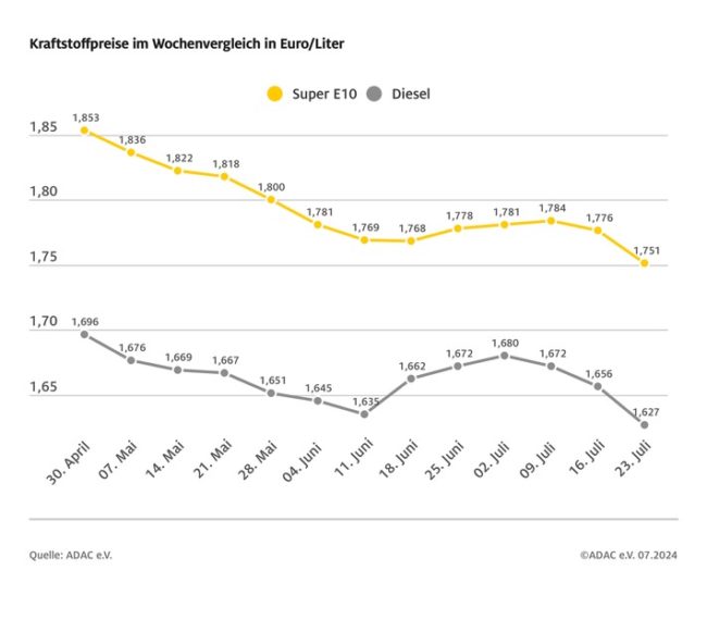 München (ots)Die Fahrer von Diesel-Pkw konnten im Juli von den niedrigsten Kraftstoffpreisen des Jahres profitieren. Das ergibt die monatliche ADAC Auswertung der Kraftstoffpreise vom Juli 2024. Danach war der durchschnittliche Preis des Selbstzünderkraftstoffs an den deutschen Tankstellen in keinem anderen Monat des Jahres niedriger als im vergangenen Monat. Ein Liter Diesel kostete im Schnitt 1,652…