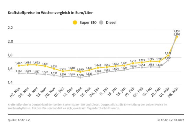 Diesel im Vergleich zur Vorwoche 14 Cent teurer – Benzinpreis steigt um knapp neun Cent