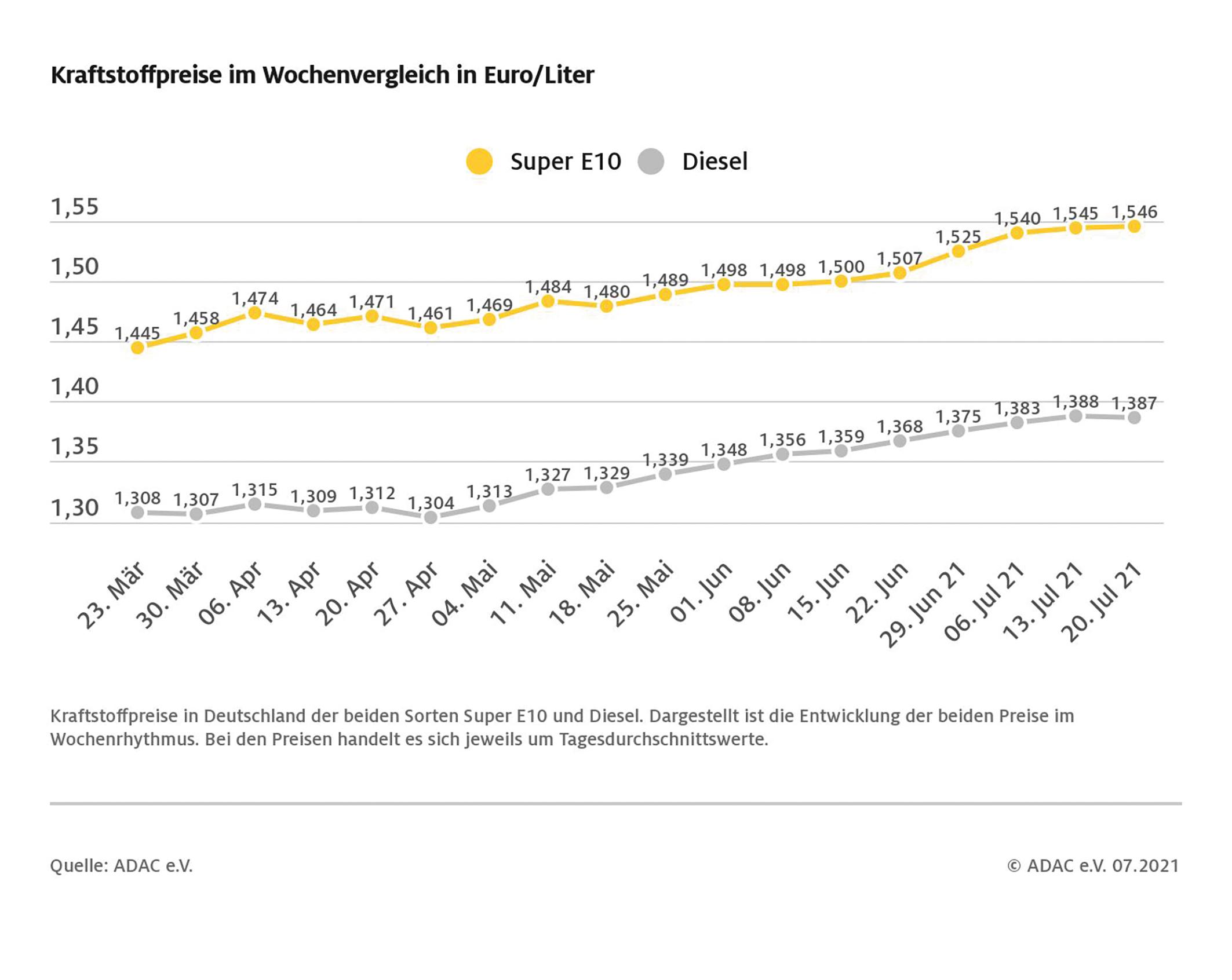 Ein Barrel Brent-Öl notiert derzeit nach der Einigung der OPEC+ über eine Erhöhung der Ölförderung bei etwa 70 US-Dollar – nach über 76 Dollar in der Vorwoche. Der deutliche Rückgang des Rohölpreises hätte nach Ansicht des ADAC niedrigere Kraftstoffpreise nach sich ziehen müssen. Vermutlich hat aber der erstarkte Urlauberverkehr und die gestiegene Nachfrage dazu geführt, dass der günstigere Ölpreis noch nicht an die Autofahrer weitergegeben wurde.